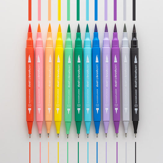 Brushpens mit Fineliner – 12er-Set